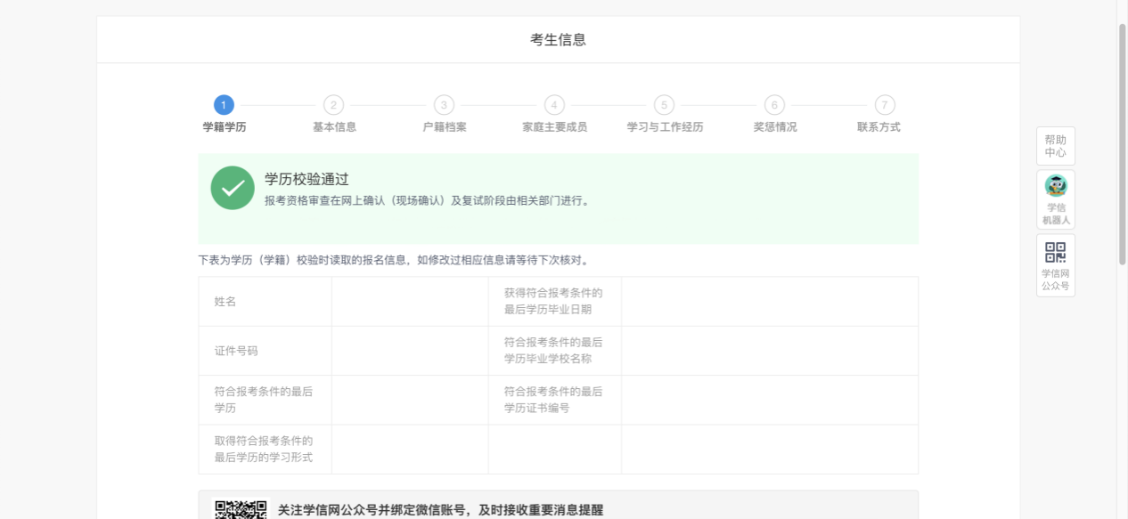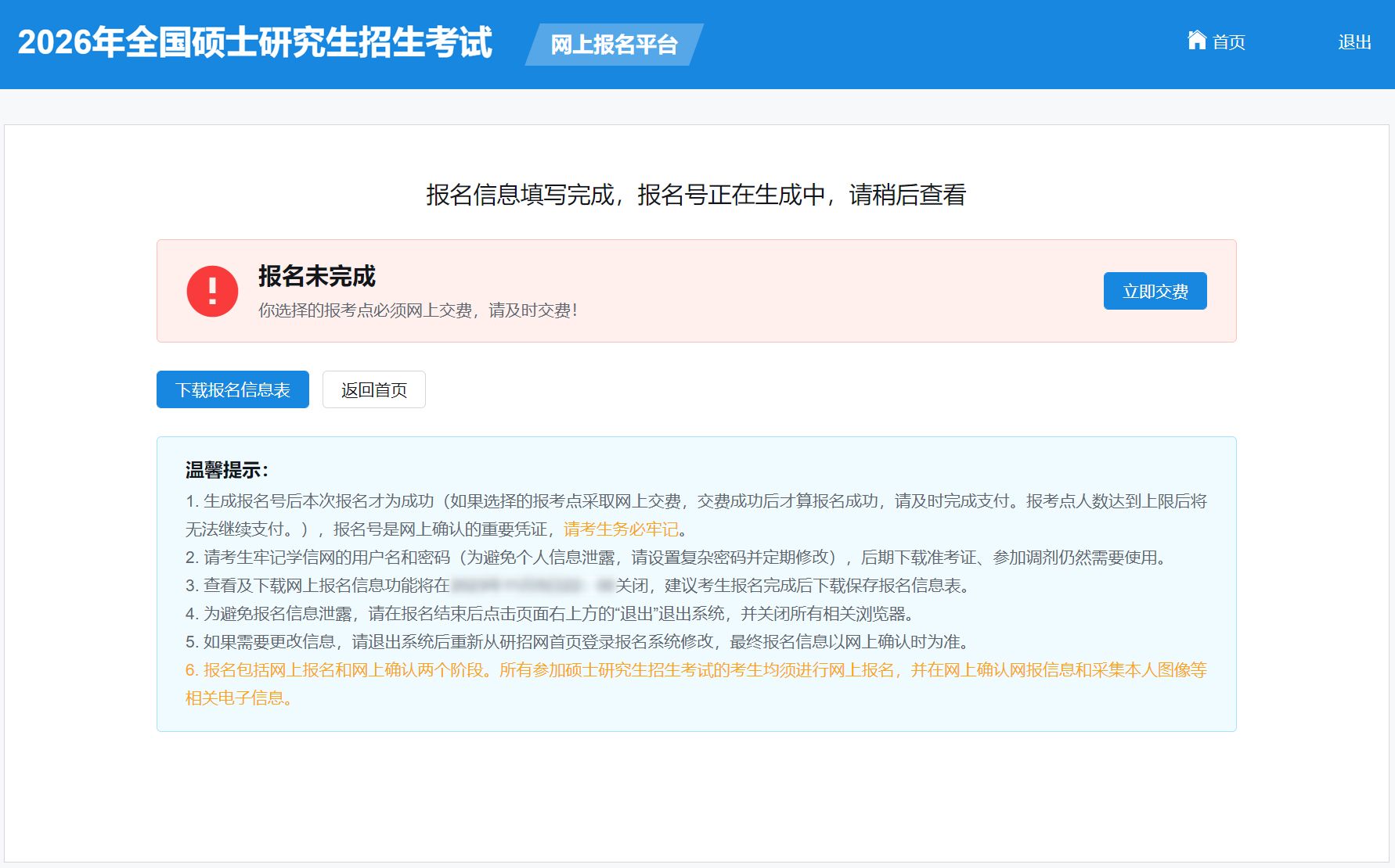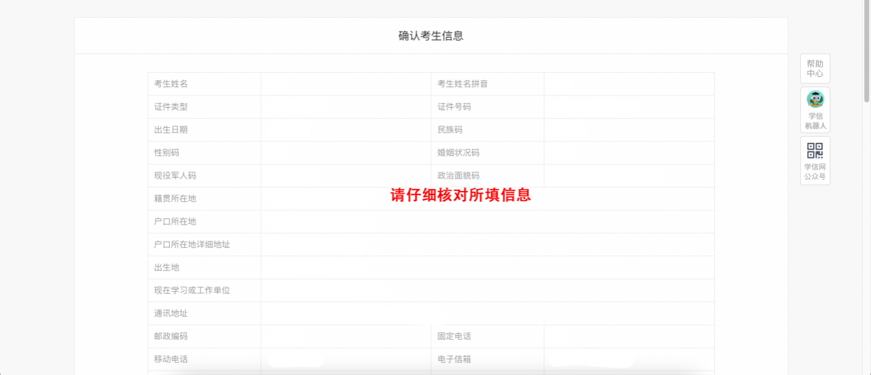 考生要认真核对网上报名信息,经考生确认的报名信息在初试、复试及录取阶段一律不作修改。因信息填报错误造成的一切后果由考生承担。